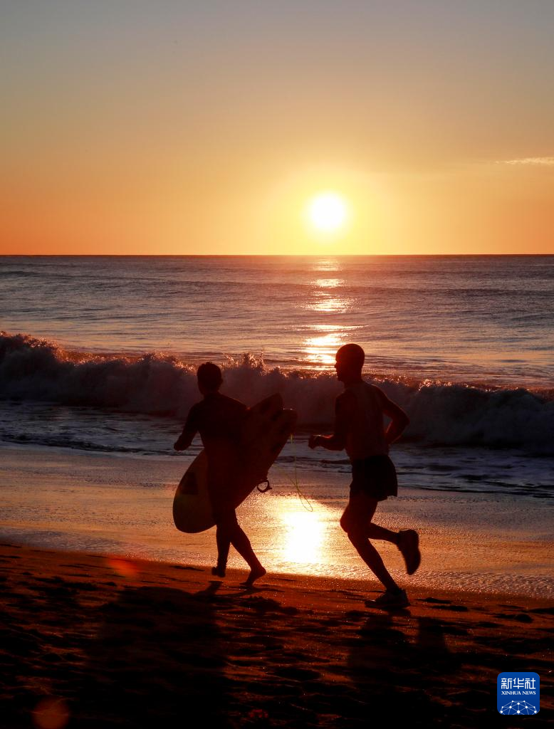 悉尼:海上日出 8月30日,人们在日出时分的澳大利亚悉尼迪怀海滩上晨练。 新华社记者 马平 摄