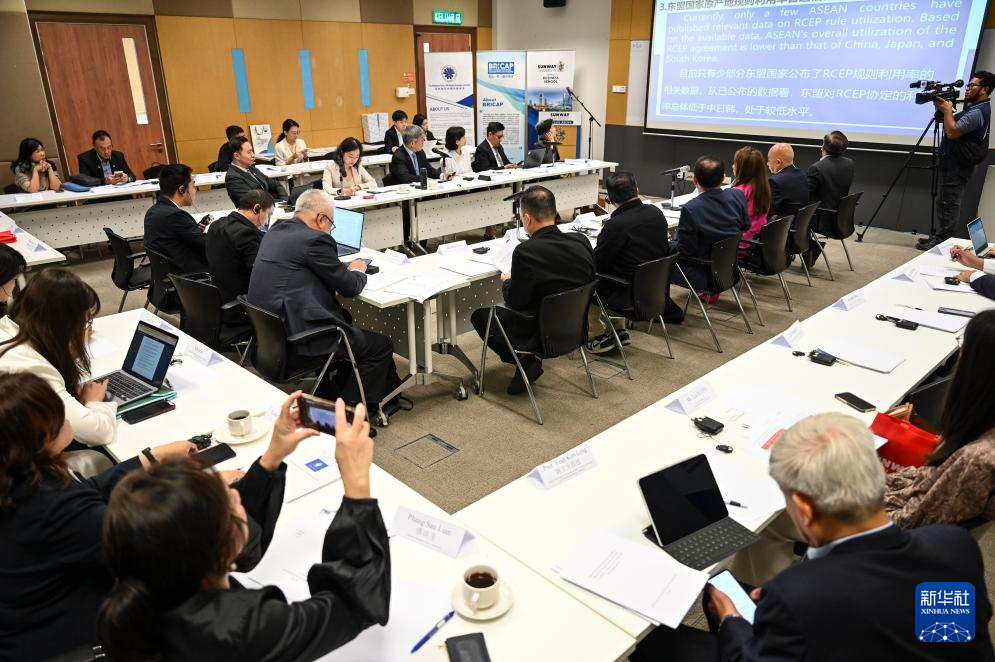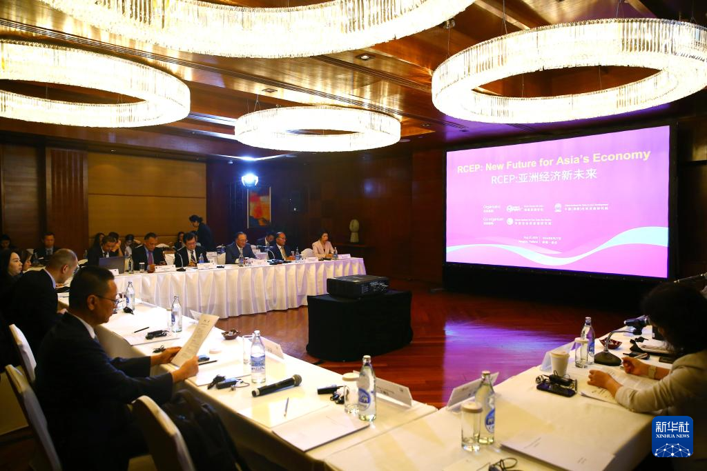 “RCEP:亚洲经济新未来”研讨会聚焦高水平共建RCEP区域大市场 这是8月27日在泰国曼谷拍摄的研讨会现场。 来自中国、泰国等国的40多位专家学者、企业代表27日齐聚曼谷,围绕“RCEP:亚洲经济新未来”议题,就高水平共建《区域全面经济伙伴关系协定》(RCEP)区域大市场、促进亚洲经济包容可持续发展等话题展开深入研讨。 新华社记者 孙玮彤 摄