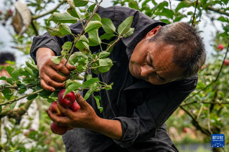 9月3日,云南省红河州蒙自市西北勒乡的农户在采摘苹果。