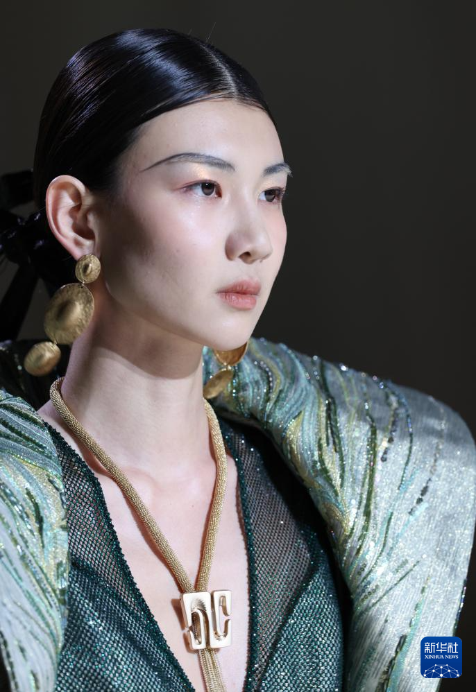 9月3日,模特在北京举行的2025春夏中国国际时装周开幕秀上展示高级定制品牌米休缇时装。