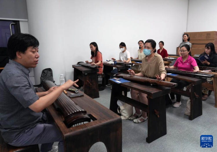 9月2日晚,在上海市群众艺术馆,夜校学员在古琴班上课。
