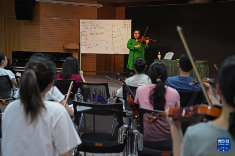 9月2日晚,在上海市群众艺术馆,夜校学员在小提琴提高班上课。