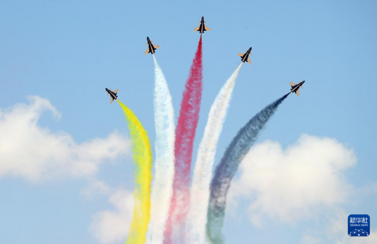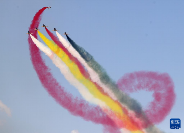 9月4日,在埃及阿拉曼举行的首届埃及航展上,中国空军八一飞行表演队进行飞行表演。