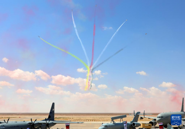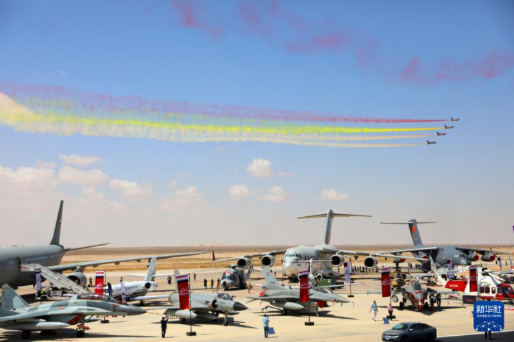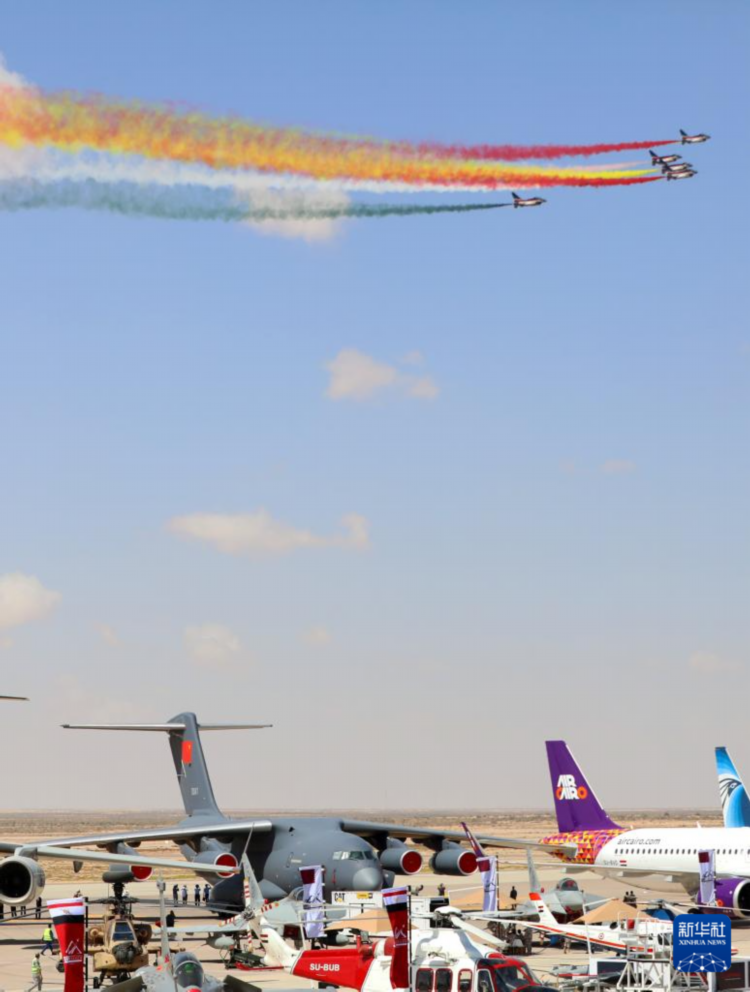 埃及首届国际航展3日在地中海南岸的埃及滨海城市阿拉曼国际机场拉开帷幕。航展期间,中国空军八一飞行表演队进行飞行表演。