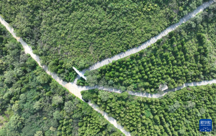 这是尧山上的旅游步道(9月4日摄,无人机照片)。