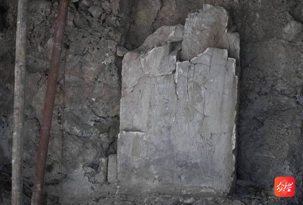 值得注意的是,在本次修缮清理发掘中,古建人员在正殿山体清理中,新发现一块破损的石碑;在偏殿花园的清理发掘一米多深位置中,发现原花园的遗址。