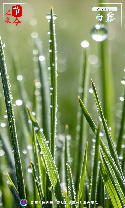 白露是秋季的第三个节气,因秋气渐深,温差较大,接近地面的水蒸气夜间遇冷凝结成水珠而得名。此时节,已经随处可见晨光下散落在草叶上的晶莹露珠。