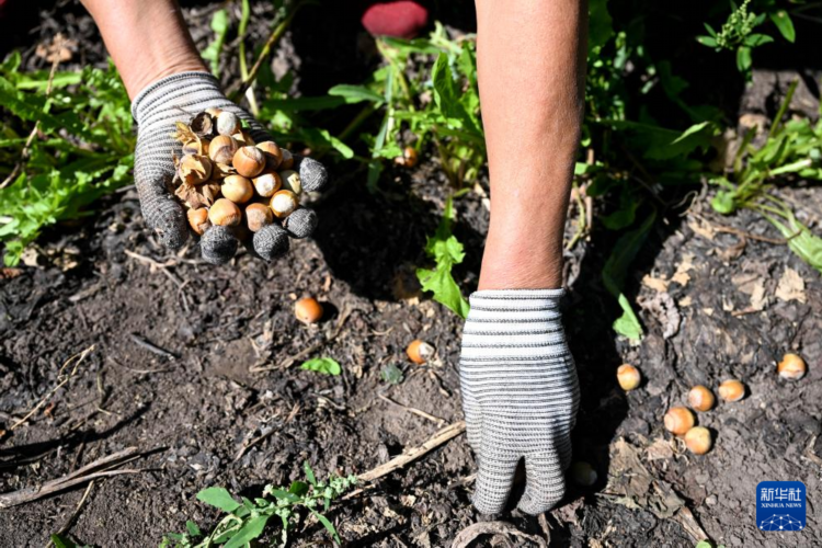 9月5日,农民在内蒙古兴安盟突泉县六户镇新合村捡榛子。
