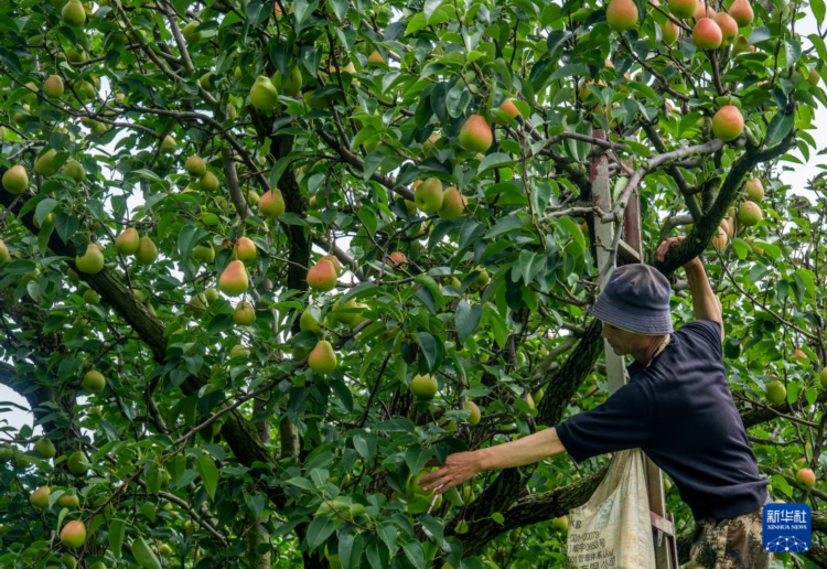 9月5日,红河州个旧市鸡街镇的果农在采摘鲁沙梨。