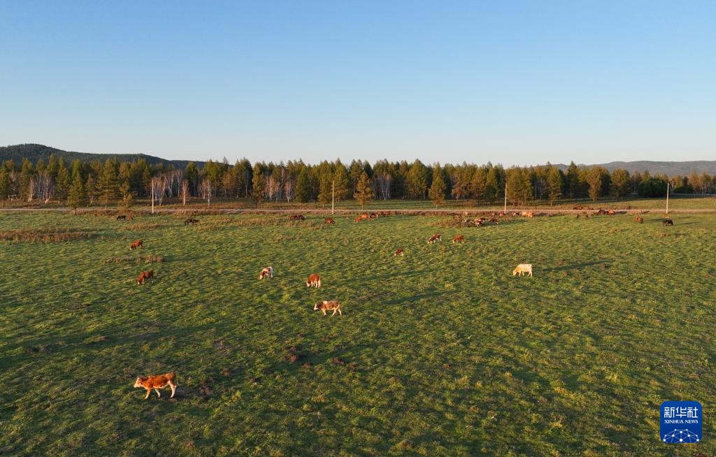 9月7日拍摄的阿尔山国家森林公园内的牛群(无人机照片)。
