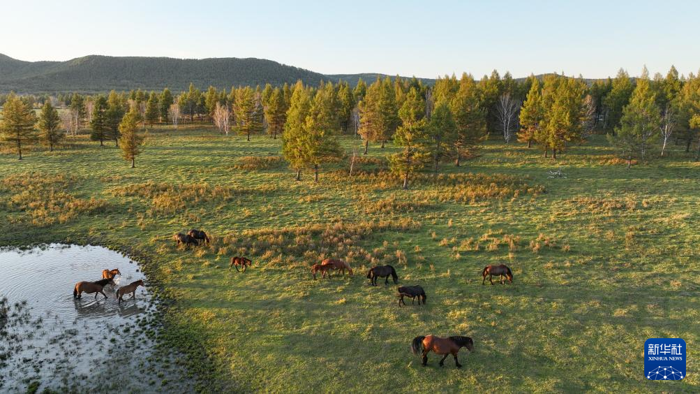 9月7日拍摄的阿尔山国家森林公园内的马群(无人机照片)。
