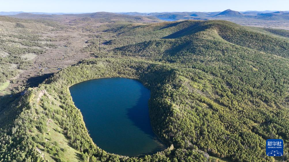 9月7日拍摄的阿尔山国家森林公园内的驼峰岭天池(无人机照片)。