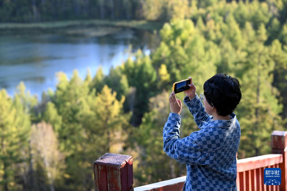 近日,内蒙古兴安盟阿尔山市的阿尔山国家森林公园内秋意渐浓,吸引游客前来赏景游玩。