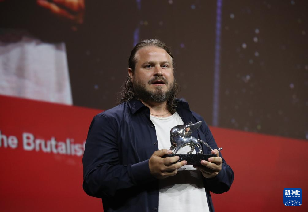 9月7日,在意大利威尼斯,凭借影片《野兽派》获得最佳导演奖的美国导演布雷迪·科比特与奖杯合影。 第81届威尼斯国际电影节7日晚在意大利威尼斯落下帷幕,西班牙导演佩德罗·阿莫多瓦的作品《隔壁房间》获得最佳影片金狮奖。此外,美国导演布雷迪·科比特凭借作品《野兽派》获得最佳导演奖,意大利电影《韦尔米利奥》获得评审团大奖,巴西和法国合拍影片《我仍在此》获得最佳编剧奖等。 新华社记者 李京 摄