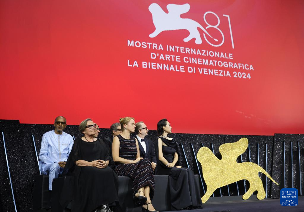 9月7日,在意大利威尼斯,第81届威尼斯国际电影节主竞赛单元评委参加闭幕式。 第81届威尼斯国际电影节7日晚在意大利威尼斯落下帷幕,西班牙导演佩德罗·阿莫多瓦的作品《隔壁房间》获得最佳影片金狮奖。此外,美国导演布雷迪·科比特凭借作品《野兽派》获得最佳导演奖,意大利电影《韦尔米利奥》获得评审团大奖,巴西和法国合拍影片《我仍在此》获得最佳编剧奖等。 新华社记者 李京 摄