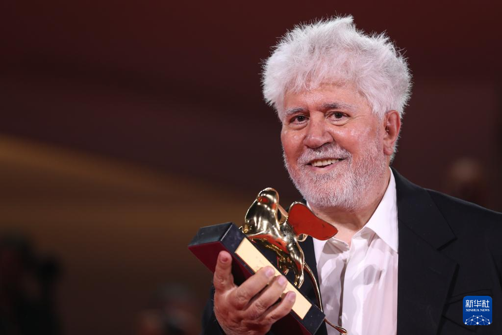 9月7日,在意大利威尼斯,凭借影片《隔壁房间》获得最佳影片金狮奖的西班牙导演佩德罗·阿莫多瓦与金狮奖杯合影。 第81届威尼斯国际电影节7日晚在意大利威尼斯落下帷幕,西班牙导演佩德罗·阿莫多瓦的作品《隔壁房间》获得最佳影片金狮奖。此外,美国导演布雷迪·科比特凭借作品《野兽派》获得最佳导演奖,意大利电影《韦尔米利奥》获得评审团大奖,巴西和法国合拍影片《我仍在此》获得最佳编剧奖等。 新华社记者 李京 摄