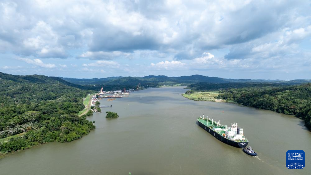 8月28日,在巴拿马首都巴拿马城附近,一艘货轮在巴拿马运河上航行(无人机照片)。 巴拿马运河连接太平洋与大西洋,全长80余公里,是全球重要贸易水道之一。巴拿马运河于1914年8月15日通航,今年巴拿马运河迎来通航110周年。 新华社记者 李木子 摄