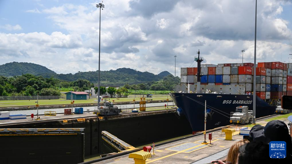 8月28日,在巴拿马首都巴拿马城附近,一艘货轮通过巴拿马运河的米拉弗洛雷斯船闸准备驶入太平洋。 巴拿马运河连接太平洋与大西洋,全长80余公里,是全球重要贸易水道之一。巴拿马运河于1914年8月15日通航,今年巴拿马运河迎来通航110周年。 新华社记者 李木子 摄