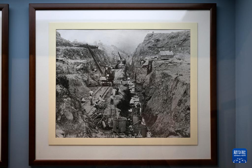 这是8月23日在巴拿马城巴拿马运河博物馆拍摄的一张19世纪末建设巴拿马运河时的老照片。 巴拿马运河连接太平洋与大西洋,全长80余公里,是全球重要贸易水道之一。巴拿马运河于1914年8月15日通航,今年巴拿马运河迎来通航110周年。 新华社记者 李木子 摄