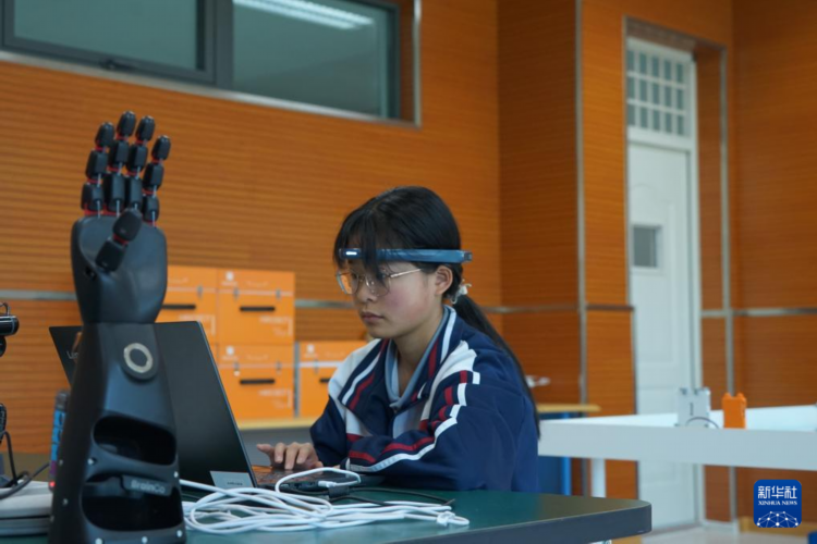 6月25日,果洛西宁民族中学学生在人工智能实验室开展社团活动。