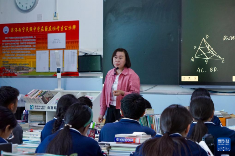 9月5日,果洛西宁民族中学的教师在给学生上课。