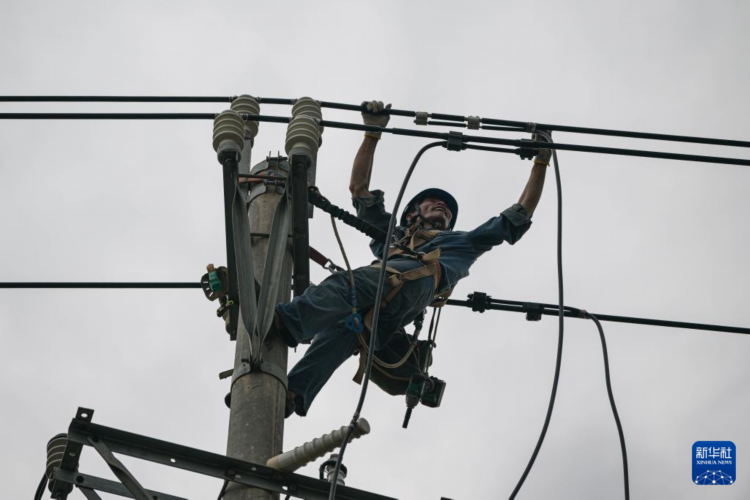 9月9日,在海南省澄迈县,海南电网公司澄迈供电局的工作人员在抢修电力线路。