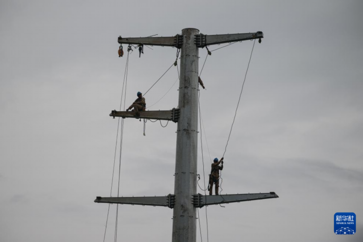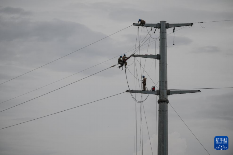 9月9日,在海南省澄迈县,海南送变电工程有限公司的工作人员在抢修电力线路。