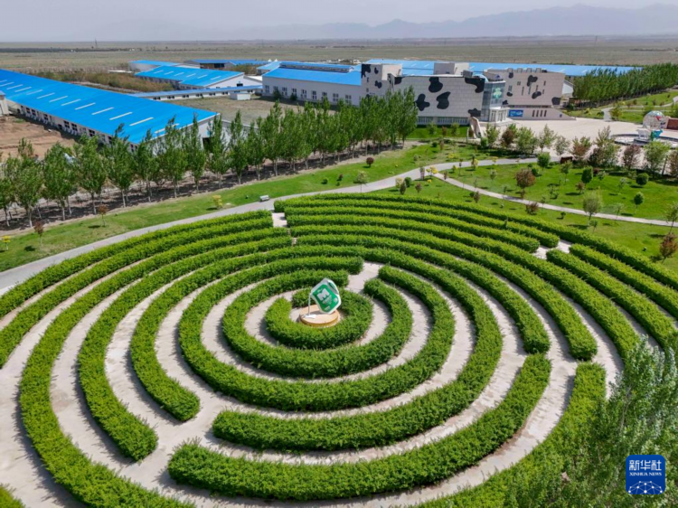 新疆生产建设兵团第十二师集奶牛养殖、旅游观光、科普宣传等为一体的天润丝路云端牧场(5月16日摄,无人机照片)。