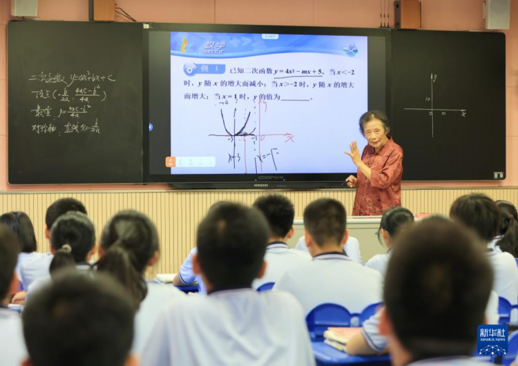 9月10日,南通市启秀中学教师李庾南在讲台上给学生们上课。