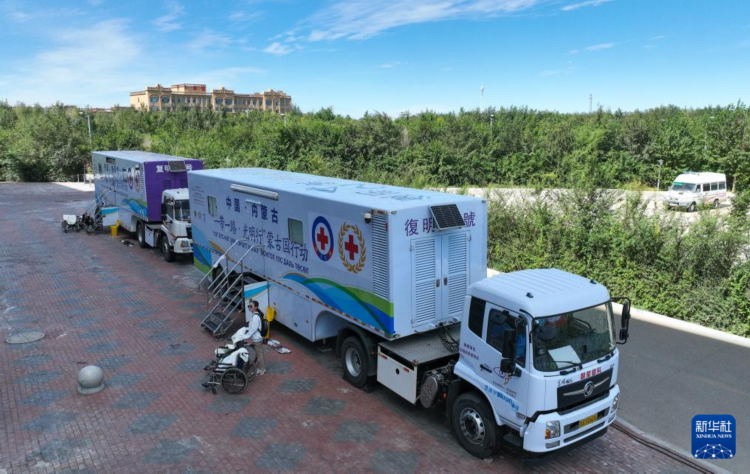 9月10日在二连浩特市人民医院拍摄的流动复明手术车(无人机照片)。