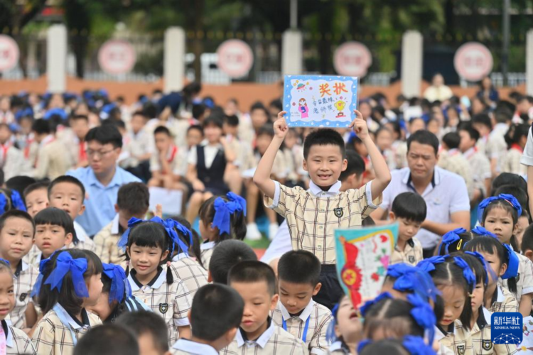 9月10日,南宁市滨湖路小学师生参加庆祝活动。