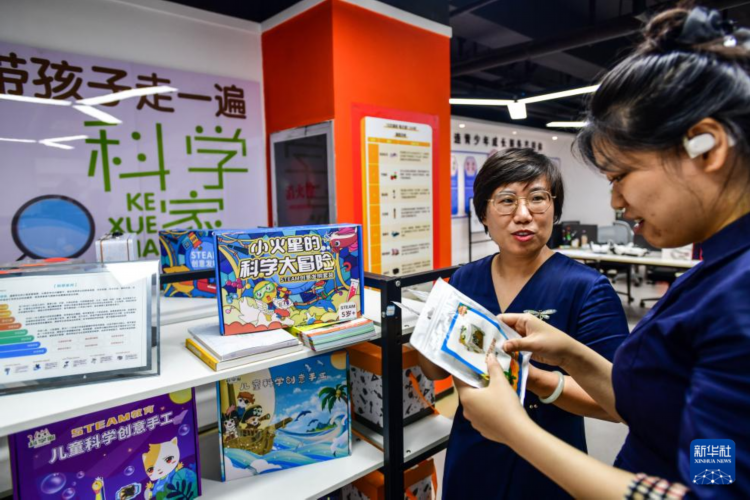 9月10日,济南市长清区大学城创新谷内,印未来(济南)科技发展有限公司员工在讨论新开发的益智玩具。