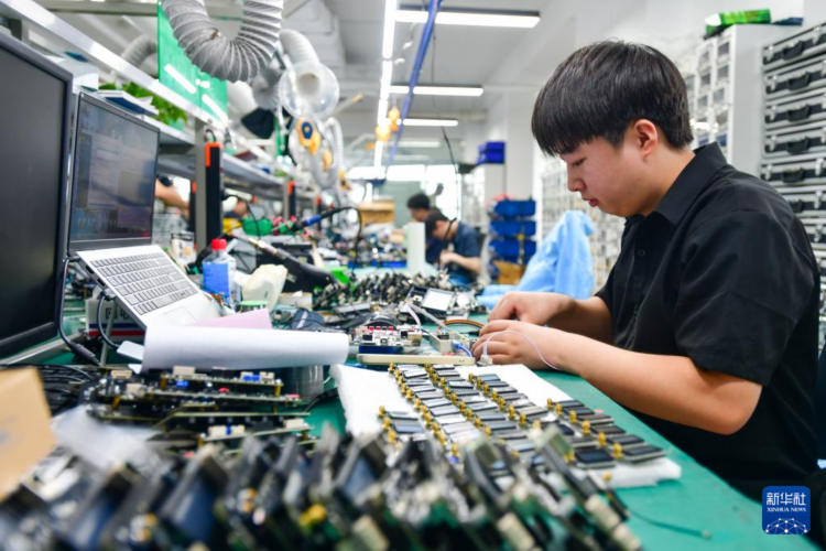 9月10日,济南市长清区大学城创新谷内,百科荣创(山东)科技发展有限公司员工在加工电子元器件。