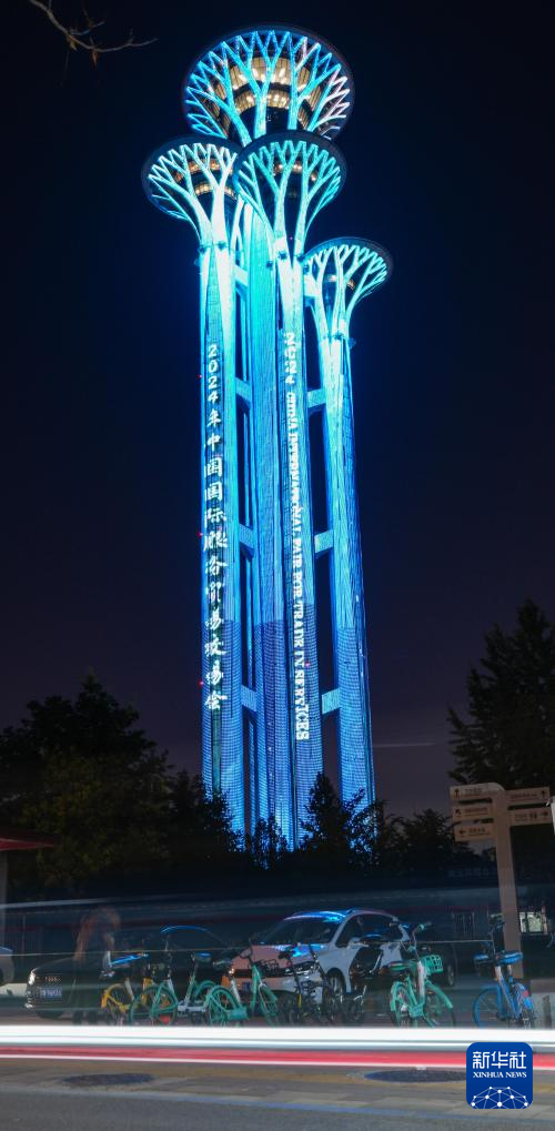 2024服贸会|奥林匹克塔上演服贸会主题灯光秀