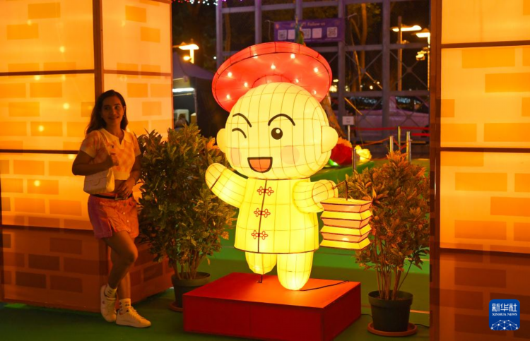 9月12日,观众在彩灯会上游览。