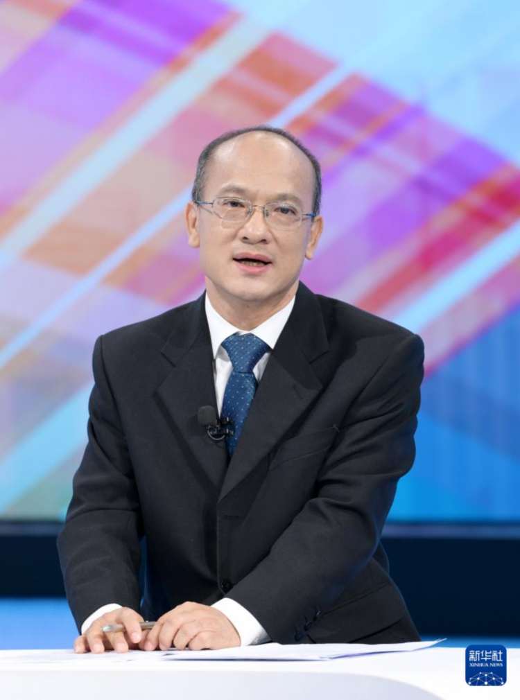 人力资源社会保障部养老保险司司长亓涛在“中国经济圆桌会”录制现场交流发言。新华社记者 李贺 摄