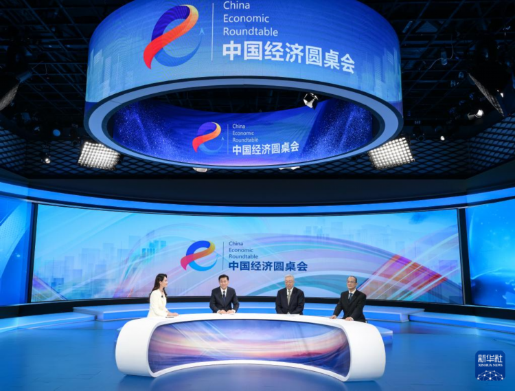 这是“中国经济圆桌会”大型全媒体访谈节目录制现场。新华社记者 李贺 摄