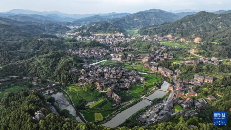 三江侗族自治县的程阳八寨(8月30日摄,无人机照片)。程阳八寨完整地保存着侗族木构建筑、歌舞文化、农耕劳作等古老传统,是中国侗族村落典型代表和原生态侗族文化生活方式动态展示区。