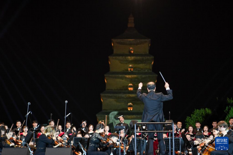 9月13日晚,2024西安交响乐团大雁塔户外公演举行,西安交响乐团、西安交响乐团合唱团、西安音乐厅童声合唱团携手演绎,为观众献上古典音乐盛宴。