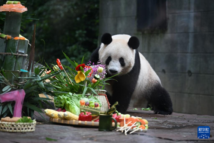 当日,中国大熊猫保护研究中心雅安基地为近期过生日的熊猫准备了一场集体生日会,饲养员们结合中秋节主题,精心准备了月饼窝窝头、水果拼盘、竹笋蛋糕及茶具茶桌等。