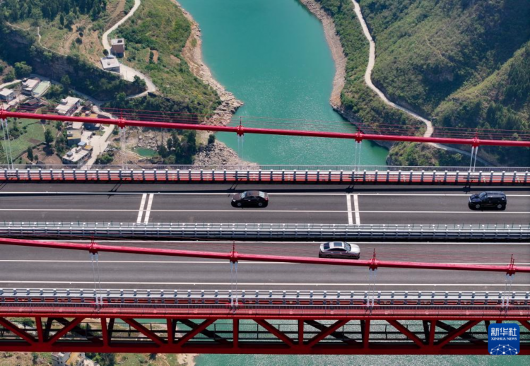 9月13日,车辆行驶在金仁桐高速桐梓河特大桥上(无人机照片)。