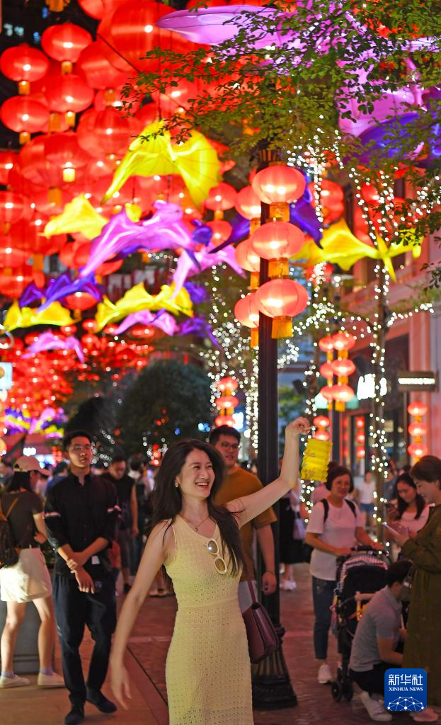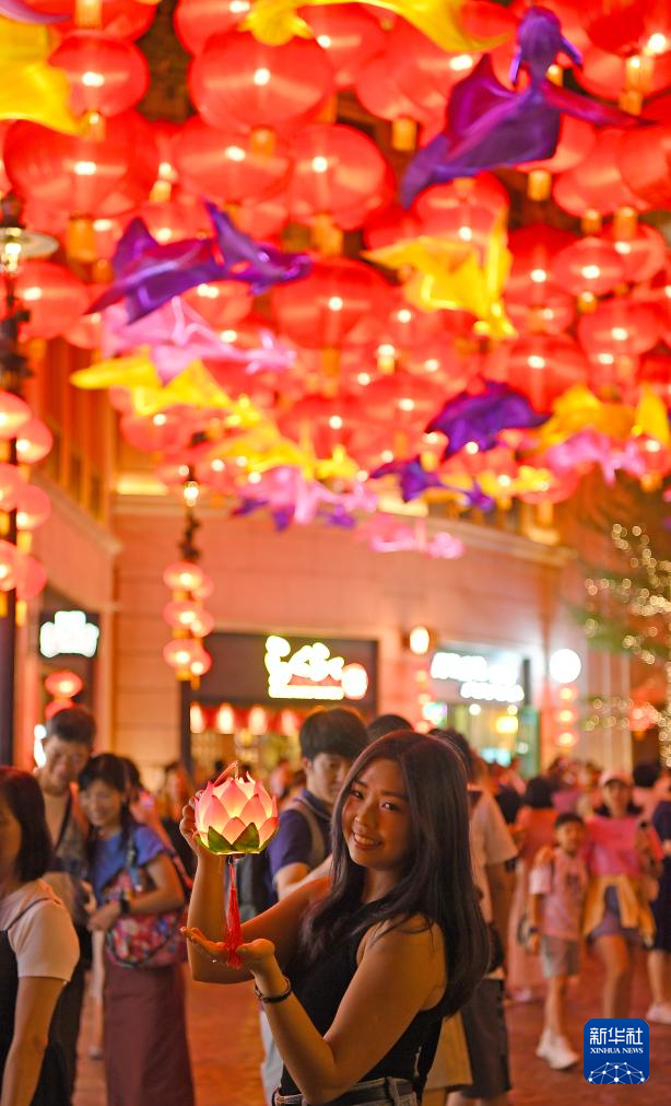 9月17日,人们在香港利东街赏灯,欢庆中秋佳节。