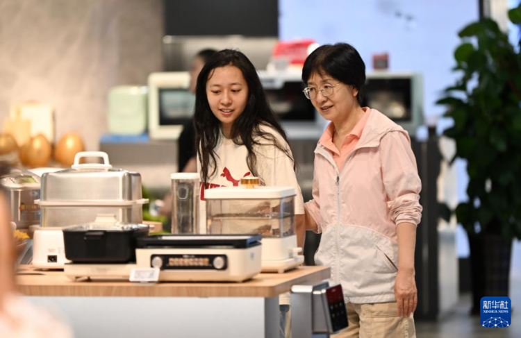 近日,天津推出24.8亿元规模资金政策支持消费品以旧换新。借助中秋假期,位于天津市南开区老城厢商圈的京东MALL超级体验店推出“以旧换新 4重补贴”等优惠,吸引众多顾客前来消费。