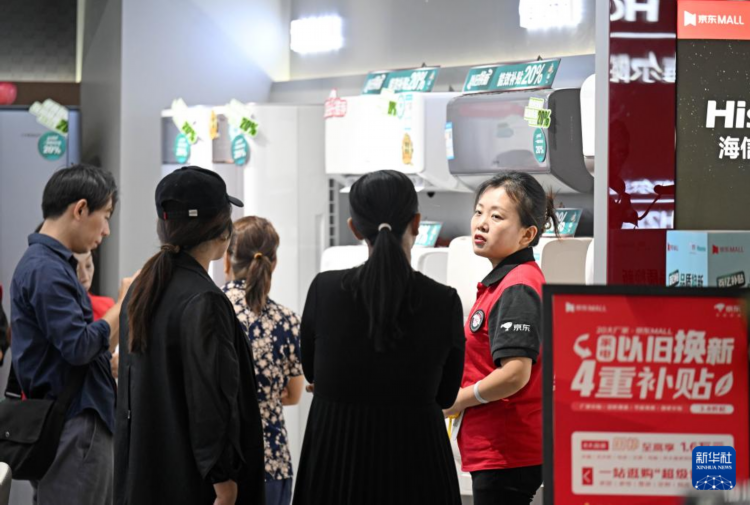 近日,天津推出24.8亿元规模资金政策支持消费品以旧换新。借助中秋假期,位于天津市南开区老城厢商圈的京东MALL超级体验店推出“以旧换新 4重补贴”等优惠,吸引众多顾客前来消费。