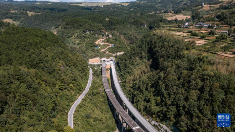 9月19日拍摄的武道高速子母岩特长隧道(无人机照片)。