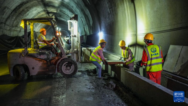 9月19日,工人在武道高速子母岩特长隧道内进行施工。