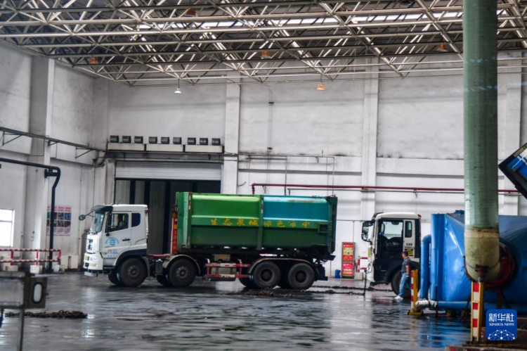 9月19日,在山东启迪济能环保科技有限公司,运输生活垃圾的车辆在园区内行驶。