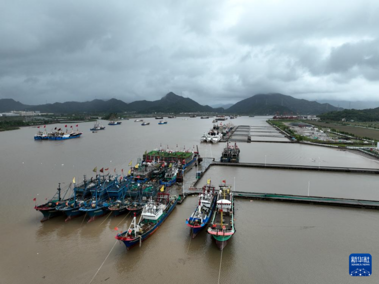 9月19日,渔船在台州市三门县健跳镇一处避风港停泊(无人机照片)。