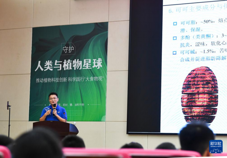 9月22日,中国热带农业科学院香料饮料研究所研究员李付鹏为学生们讲解可可相关知识。