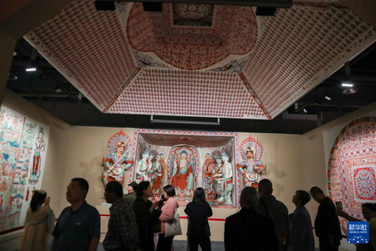 9月22日,在敦煌研究院“典范”“高地”建设成果展上,游客参观莫高窟第172窟整窟复原临摹成果。